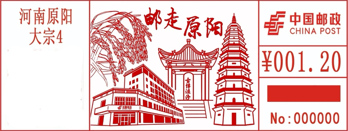 饱满稻穗展示了"原阳大米"的农耕底蕴,古博浪沙亭记载着张良刺秦的千年传奇,玲珑塔展现了原阳的历史文脉,邮政大楼则是本次青年集邮联谊活动举办的场地。