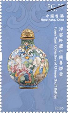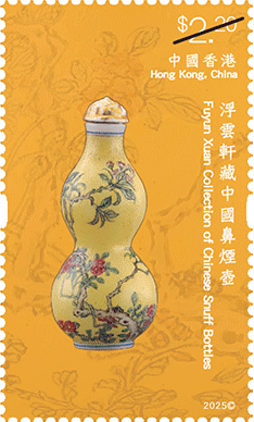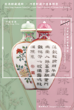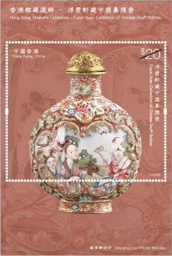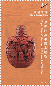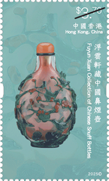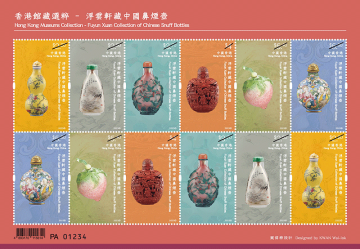 「浮云轩」为中国鼻烟壶私人收藏,由已故香港收藏家冼祖谦先生建立。冼先生遗孀冼石韫玉女士将冼先生珍藏的 490 组鼻烟壶捐赠予香港艺术馆作永久馆藏,让大众得以欣赏该批弥足珍贵的文化瑰宝。细小纤巧的鼻烟壶汇聚多种工艺于方寸之间,犹如袖珍的中国工艺美术史。延续「香港馆藏选粹」特别邮票系列,香港邮政以「香港馆藏选粹—浮云轩藏中国鼻烟壶」为题发行一套六枚邮票及两款邮票小型张,展示冼祖谦石韫玉夫妇捐赠的浮云轩藏品中别具代表性的中国鼻烟壶,涵盖不同材质和样式,囊括玻璃、水晶、漆器、陶瓷等不同品类,在仅足盈握的壶身体现中国工匠精巧绝伦的手艺与创意。