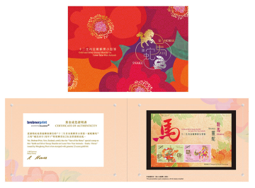 巳蛇辞旧岁,午马迎新春。香港邮政特别发行以「灵蛇骏马」为题的十二生肖金银邮票小型张。生肖邮票上的灵蛇与骏马分别以银箔和 22K 金箔烫压点缀。