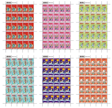 这枚邮票将东方式的幽默注入西方节日传统之中,呈现一片欢欣快乐的圣诞气氛。 老夫子和大番薯打扮成圣诞老人,为大家送上礼物和祝福。 邮票以飘雪为背景,配以标志圣诞的红色,加添了一点动感和温馨。