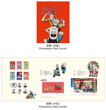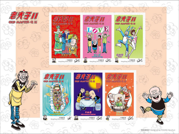 邮票展示老夫子、大番薯和秦先生身穿盛装,组成一幅诙谐而吉祥的拜年图。 秦先生怀揣象征祥瑞的小马,大番薯手持代表稳健奔放的马头杖,为大家送上「马到功成、龙马精神」的新春祝福。