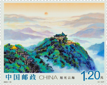 第三枚“旭光云海”,描绘了莫干山的日出景象。该枚邮票定格了莫干山旭日东升的壮丽景象,旭光台作为莫干山观赏日出的绝佳观景台,将天地交辉的盛景尽收眼底。远山如黛,云涛似海,万道金芒为连绵山峦披上锦袍,昭示着此刻的莫干山正以更辉煌的姿态拥抱崭新的未来。