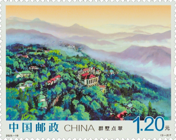 第二枚“群墅点翠”,呈现了莫干山的建筑风貌。此枚邮票将掩映在翠竹间众多风格各异的别墅尽收眼底,别墅群落依山就势,错落层叠,红瓦青砖与修竹劲松相映成趣。每一顶屋檐、每一道门廊、每一方露台,都镌刻着莫干山的发展脉络、改革印记,中西对话在此完成碰撞交融。