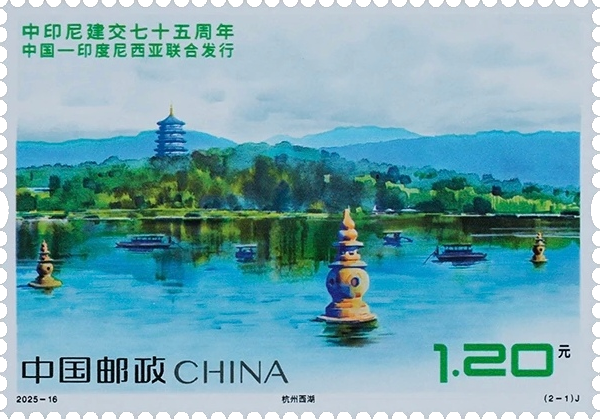 邮票第一图表现内容为杭州西湖。杭州西湖是中国历史上的“文化名湖”,也是享誉中外的“人间天堂”,以秀丽的湖光山色、悠久的历史、深厚的文化内涵以及丰富的文化史迹闻名世界,被联合国教科文组织列入《世界遗产名录》。邮票第二图表现内容为布拉坦湖。布拉坦湖是印度尼西亚巴厘岛上著名的标志性景观之一,也是当地的主要灌溉水源,形成于火山口上,山水灵秀,景色清幽,天气凉爽,周围建筑融合了不同风格,优雅精致,历史悠久,深受游客喜爱。