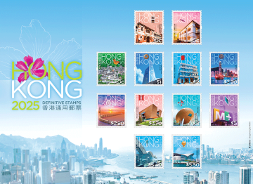 香港邮政以香港地标为主题,发行「二○二五年香港通用邮票」,透过一套十六枚的邮票介绍香港著名地标,展示香港作为国际金融枢纽和中外文化艺术交流中心具有的独特性和吸引力。邮票呈现香港迷人的景观,并描绘香港重要的基础设施发展及保育成就。