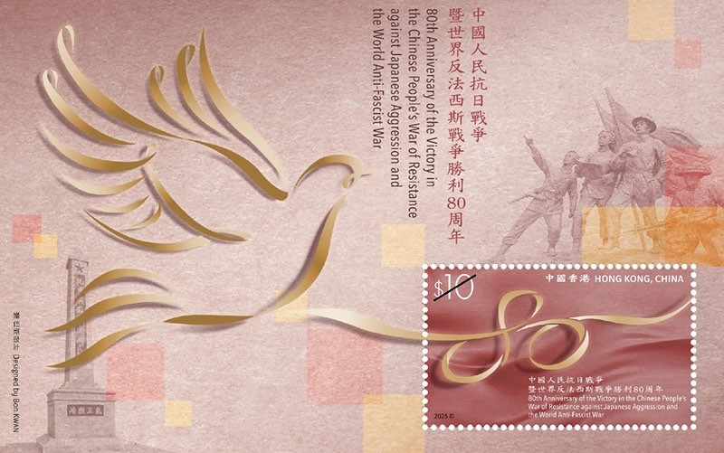 80 年前,中国人民经过长达 14 年艰苦卓绝的浴血奋战,取得了中国人民抗日战争的伟大胜利,宣告了世界反法西斯战争的完全胜利。今年,香港邮政以「中国人民抗日战争暨世界反法西斯战争胜利 80 周年」为题,发行一款邮票小型张。邮票小型张的设计围绕抗战胜利 80 周年纪念的主题—「铭记历史、缅怀先烈、珍爱和平、开创未来」。
