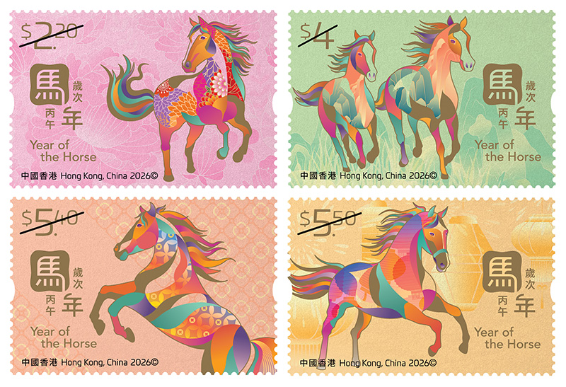 十二生肖文化底蕴深厚,承载着中华传统的重要象征。为迎接丙午马年,香港邮政发行贺岁生肖邮票第五辑的第三套。整套邮票包含四枚邮票及两张邮票小型张,各以不同姿态的骏马为主题。