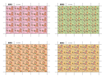 10 元邮票小型张和 50 元镭射剪纸邮票小型张均以年花图案为马身装饰,寓意新春繁花似锦,骏马载福而行。每一朵花皆蕴含独特吉祥意象,与奔马形成移动的花园和奔腾的祝福。邮票上骏马的剪纸图继续沿用著名民间剪纸艺术家范祚信的高密剪纸十二生肖系列作品。