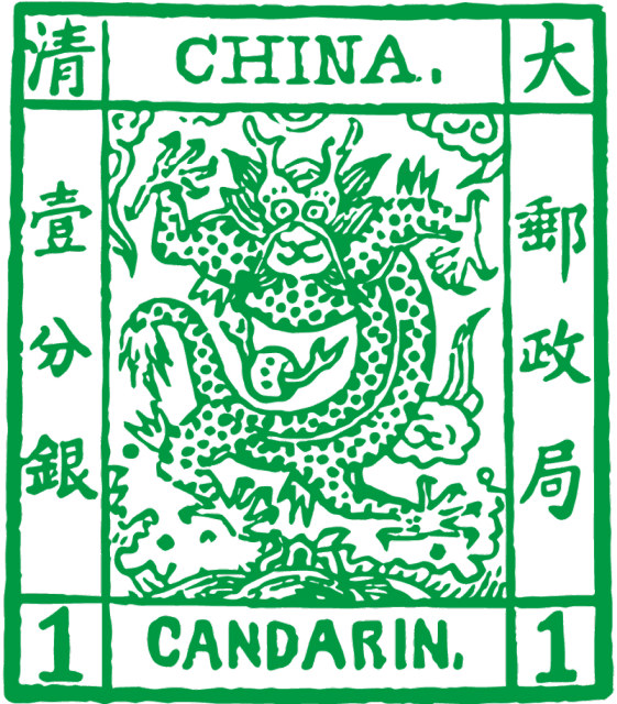 1878 年,晚清海关第二任总税务司、英国人赫德指派津海关(今天津)税务司德璀琳筹办海关邮政,很快,德璀琳在天津、北京、营口、烟台和上海五处试办邮政。中国第一套邮票就由海关造册处(位于今上海)印制,首先在天津发行使用。这套邮票共 3 枚,邮资面值以中国海关记账单位关平银(海关银)表示,分为:一分银(绿色)、三分银(红色)、五分银(黄色)。1988 年该套邮票发行 110 周年时,原邮电部才正式将其定名为“中国大龙邮票”,简称“大龙邮票”,其作为中国现代邮政发端的重要标志,在中国邮政发展史具有里程碑式的意义,并被列入 73 种世界各国最早诞生的邮票行列。