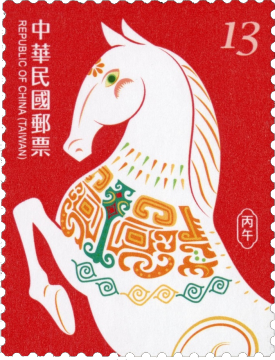 二、 面值 13 元邮票:白马寓意坚毅刚健,祝福新年一马当先,自强不息。