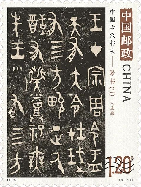 本套邮票精选五件文物,通过其青铜铭文与石刻文字拓片,传递千年篆韵。