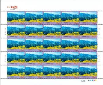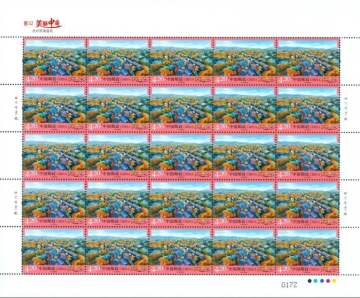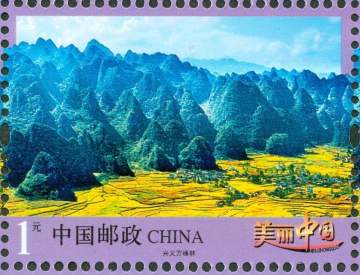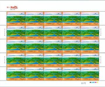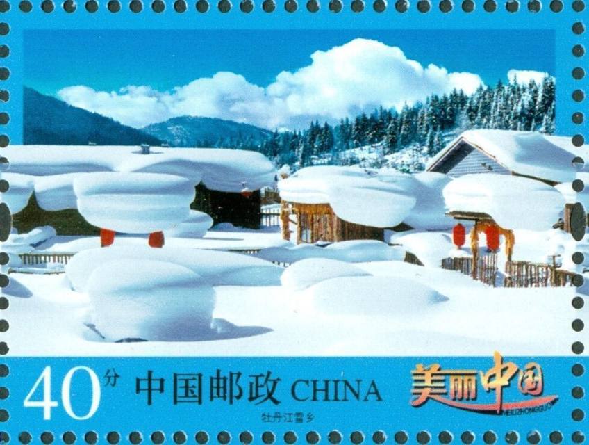 《美丽中国》普通邮票第二组延续了第一组的设计风格,选取我国东南西北各地风光,其地貌差别大,风景多样,方寸之上展示了我国的幅员辽阔,山川秀美。第一图黑龙江省牡丹江市双峰林场雪乡,表现冬季积雪覆盖的北国风光;第二图贵州省兴义市万峰林,其喀斯特地形地貌典型突出,形成了独特的锥状喀斯特地质景观;第三图宁夏回族自治区石嘴山市沙湖,沙漠与水域毗邻而居,既有大漠戈壁之雄浑,又有江南水乡之秀美,画面表现了当地良好的自然和生态环境;第四图浙江省杭州市西溪湿地,为国家湿地公园,其间水道如巷、河汊如网,鱼塘栉比、诸岛棋布,动植物资源丰富。